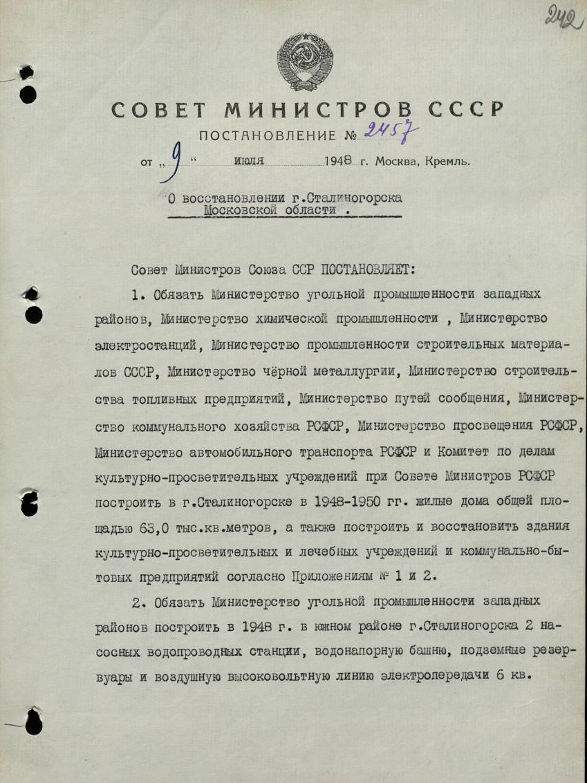 А вы знали, что данный сквер был заложен в 1948 году на основании постановления Совета Министров СССР № 2457 от 09 июля 1948 г. «О восстановлении г. Сталиногорска Московской области»? Копию этого важного для нашего города исторического документа нам предоставили коллеги из Государственного архива Российской Федерации. (канал ГАРФ https://t.me/garf_docs ).