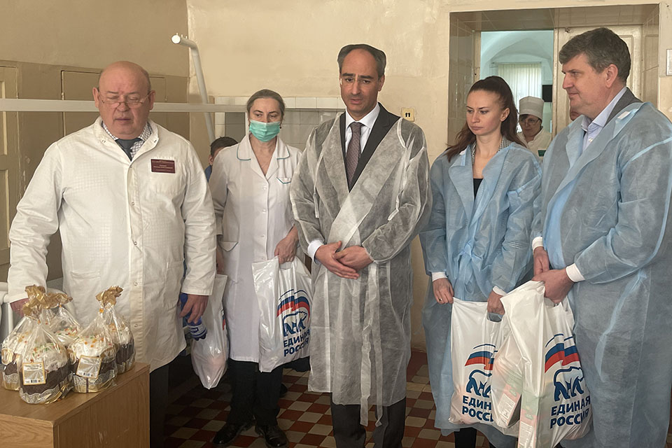 В пятницу, 14 апреля, в преддверии Светлого праздника Пасхи депутат Тульской городской Думы, член фракции «Единая Россия» Дарья Герасимова и члены городского политсовета Артем Асатрян и Александр Картышов посетили филиал военно-клинического госпиталя Минобороны, где проходят лечение военнослужащие – участники СВО.