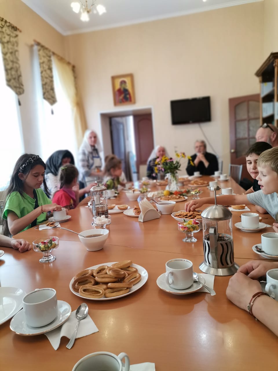 В гостиной отдела за накрытым сестрами милосердия столом все отведали чая с освященным в этот день душистым медом нового урожая и побеседовали с председателем благотворительного отдела протоиереем Сергием Резухиным, объяснившим собравшимся духовный смысл празднования Церковью дня Происхождения (изнесения) Честных Древ Животоворящего Креста Господня, именуемого в народе Медовым спасом.