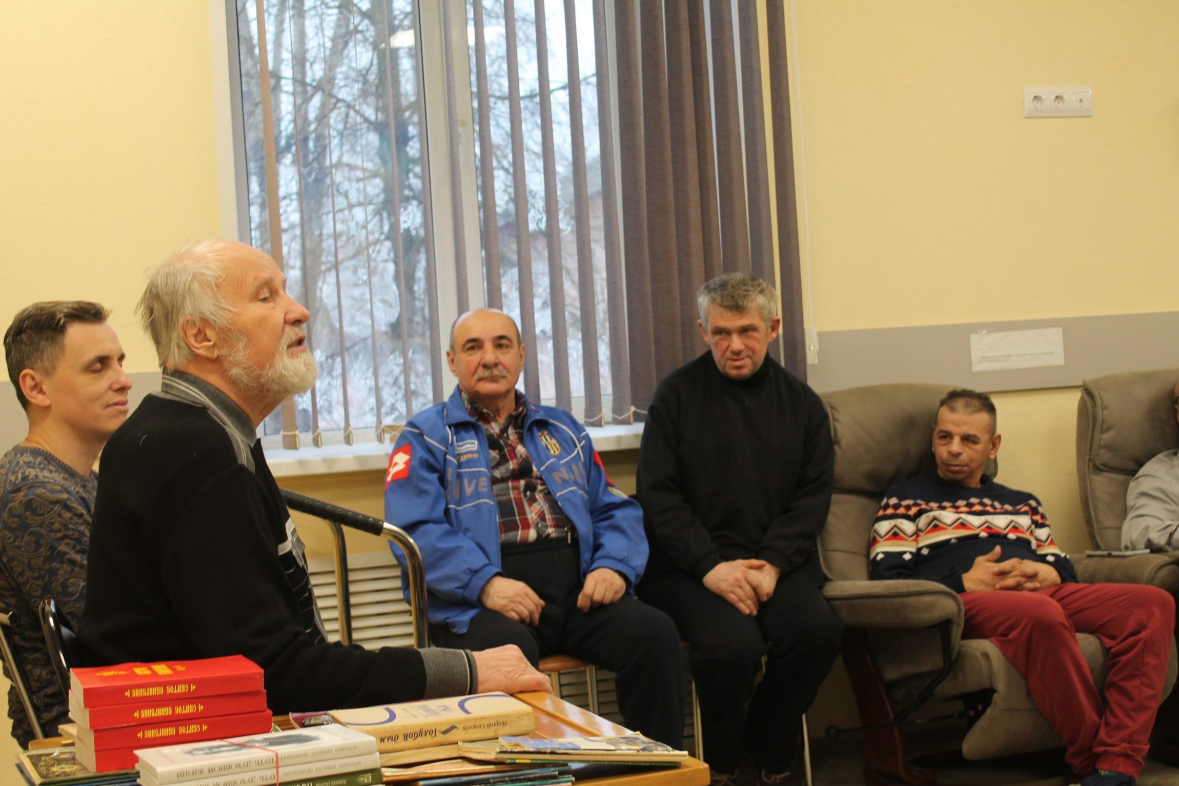 Совместными усилиями Тульского отделения Общества русской словесности и Восточного благочиния Тулы в Полустационарном социально-реабилитационном отделении для граждан пожилого возраста и инвалидов была организована просветительская беседа Олега Сенина, помощника митрополита Тульского и Ефремовского Алексия по работе Общества, с отдыхающими.