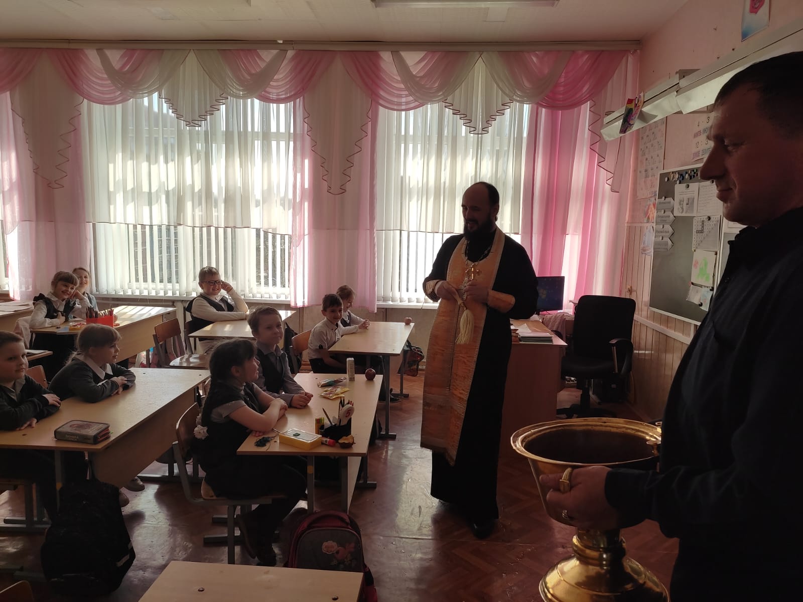 Директор школы Трофимова Лариса поблагодарила духовенство за поддержку: «Благодарим вас, дорогие наши батюшки, за слова наставления и молитву. Дай Бог, чтобы наши дети прошли экзаменационные испытания успешно».