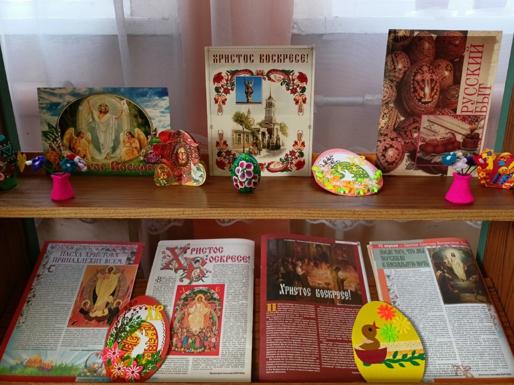 В Центральной городской библиотеке имени Л. Н. Никоновой оформлена выставочная экспозиция «Светлое Христово Воскресение» .