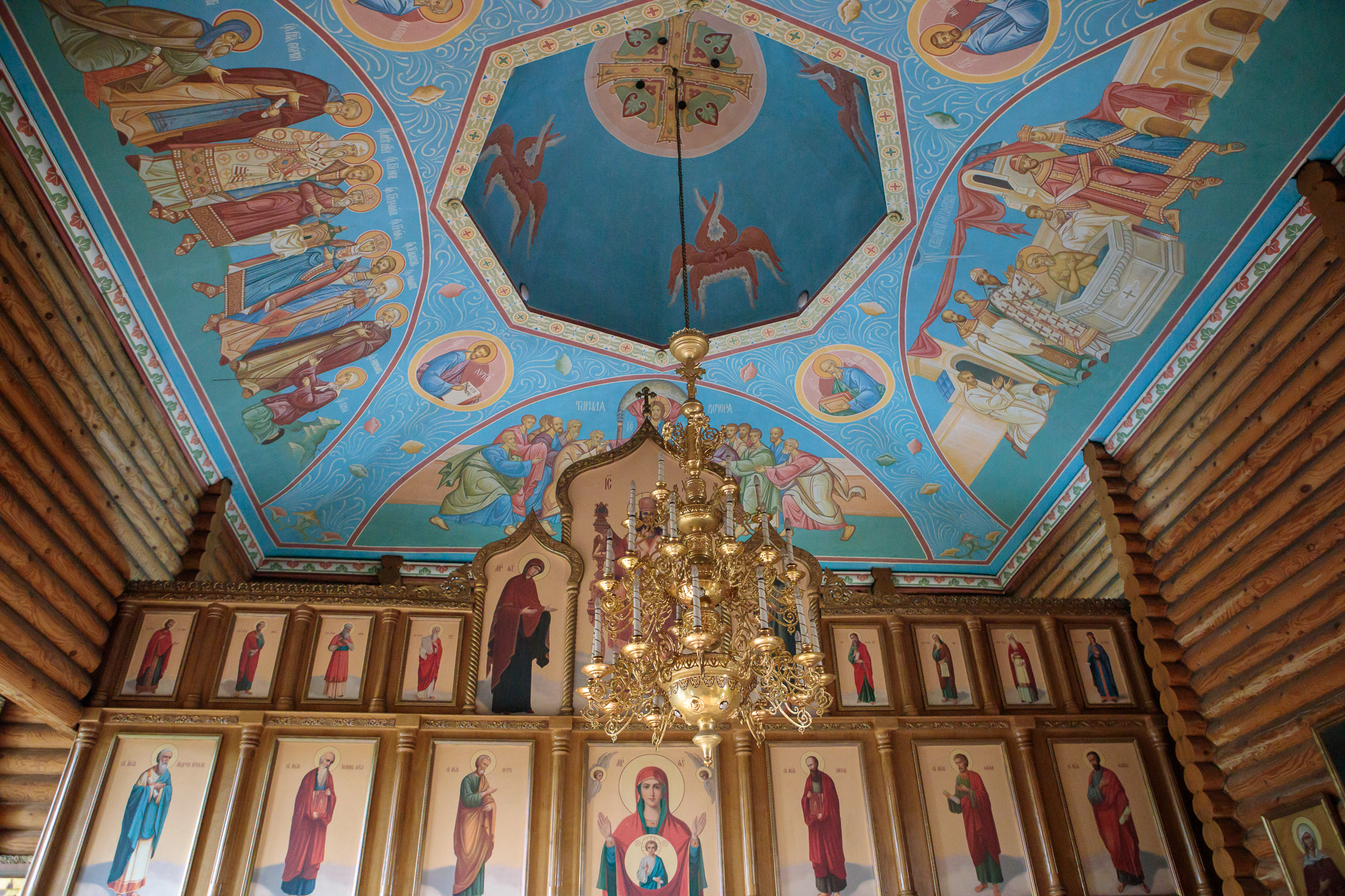 В деревянном храме тепло. Построенный без единого гвоздя сосновый сруб практически полностью поглощает шум оживлённой улицы. Приглушённый свет и запах плавящегося воска дарят чувство непривычной защищённости, словно закрывшаяся за спиной дверь церкви отрезает тебя от повсе дневной суеты и бесконечных тревог. Хочется хотя бы на несколько минут прикрыть глаза и присло ниться виском к брёвнам цвета тёмного мёда, впитывая в себя царящий здесь покой…
