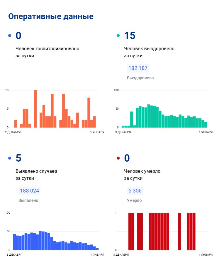 Общее число заболевших в регионе достигло 188 024 человек. За последние сутки никому из пациентов не потребовалась госпитализация.