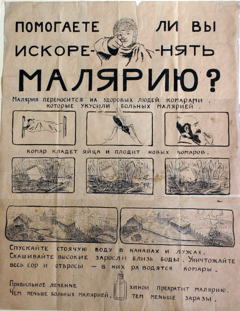 Первое место «среди заразных заболеваний в г. Туле занимает перемежающаяся лихорадка, или малярия. На ее долю приходится почти половина всех зарегистрированных в г. Туле заболеваний. Число заболевших малярией в неделю в июне доходило до 150, т. е. в неделю заболело более одного на тысячу населения. В июле и августе заболеваемость малярией уменьшилась по сравнению с июнем в три раза, до 40–50 заболеваний в неделю. В конце августа и сентябре можем ждать новой вспышки малярии».