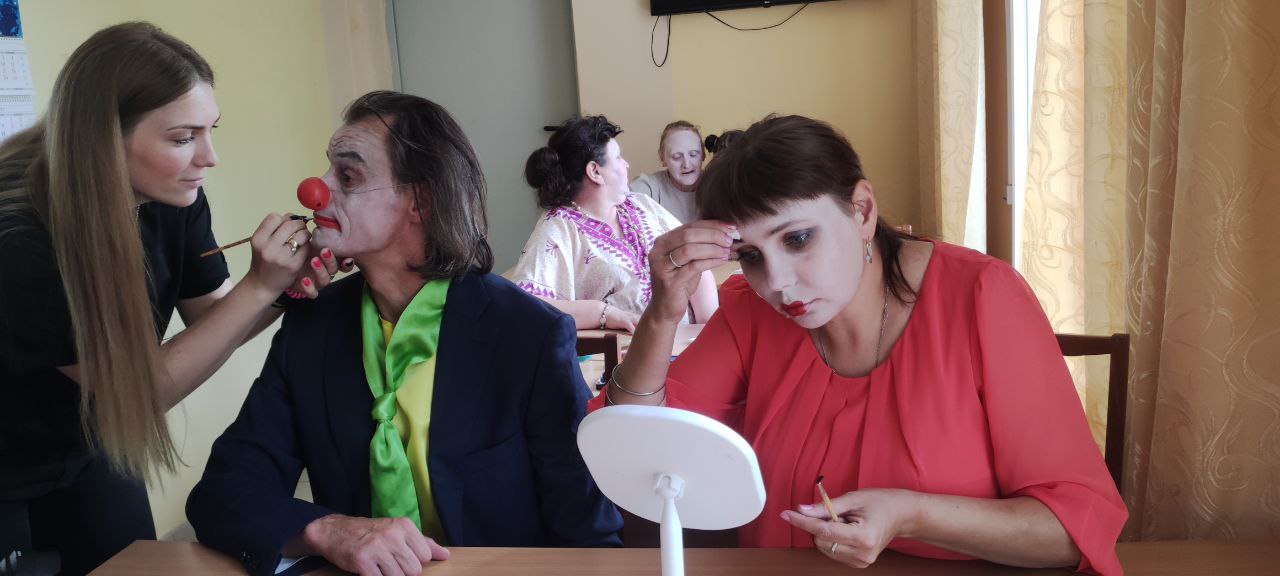 Каждый день обитатели интерната наносят грим, надевают клоунские парики и костюмы и выступают с юмористическими номерами. Их аудитория - другие дома-интернаты, но в этом году коллектив подал заявку на участие в международном фестивале «Спорт и творчество» в Санкт-Петербурге. Сейчас труппа готовит новые номера: выступление клоуна-солиста и юмористические сценки женского трио.