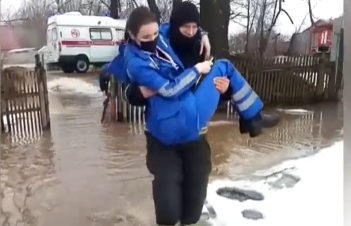 Бригада скорой помощи в Донском смогла добраться до пациента только с помощью МЧС из-за половодья, сообщили очевидцы в группе «Тула Жесть».