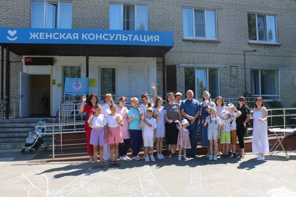 По традиции на площадке перед зданием женской консультации собрались представители медучреждения и активисты Тульской региональной общественной организации «Ассоциация многодетных семей» со своими ребятишками.