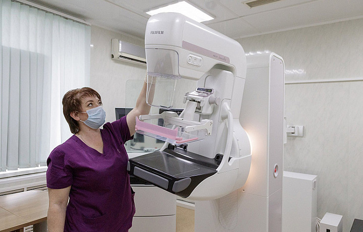 Благодаря нацпроекту «Здравоохранение» онкодиспансер оснащен современным оборудованием для диагностики и лечения рака молочной железы. Специалисты с помощью современного маммографа могут обнаружить даже маленькие новообразования размером до 3-5 мм и начальные признаки болезни. Маммограф также позволяет проводить предооперационную разметку и биопсию. База данных в памяти компьютера помогает отслеживать изменения, выявленные при предыдущих исследованиях. В онкодиспансере созданы все условия для лечения рака, но важно, чтобы пациентки своевременно обращались к врачу, подчеркнул Алексей Пушкаренко.