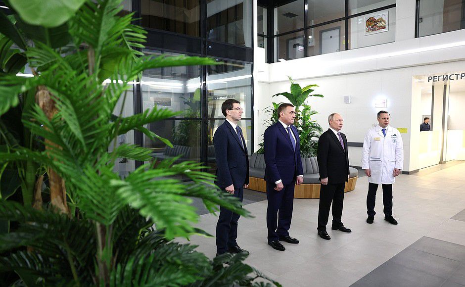 Владимир Путин осмотрел Тульский областной клинический онкологический диспансер, который открылся в декабре 2023 года.