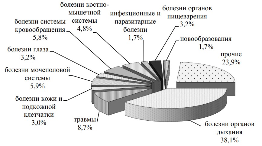 Замыкают тройку лидеров болезни мочеполовой системы и системы кровообращения — 5,9% и 5,8% соответственно.