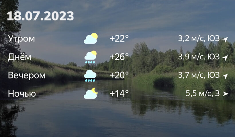 ПОГОДАВ Тульской области, 18 июля ожидается облачная погода , в дневные часы воздух прогреется до +26 градусов. В вечернее время термометры покажут +20 градусов. Ночью температура опустится до отметки +14 градусов. Сообщают синоптики «Яндекс. Погоды».