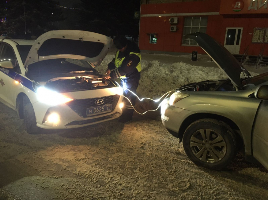 Аналогичная ситуация произошла поздней ночью на автодороге М-2 «Крым» в Плавском районе. На краю проезжей части стоял автомобиль «Lexus» с открытым капотом. Экипаж ДПС в составе инспекторов ДПС ОБ ДПС Госавтоинспекции УМВД России по Тульской области лейтенантов полиции Романа Гненкова и Сергея Безрукова развернулись и подъехал к нему. Водитель пояснил, что у иномарки проблемы с аккумулятором, поэтому долгое время не заводится. Температура воздуха была отрицательная, салон легковушки остыл, мужчина начал замерзать. С помощью патрульного автомобиля инспекторы оперативно устранили неисправность, и иногородний водитель смог продолжить свой путь.