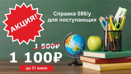 ✅ В Городской поликлинике на Парковой cправка 086/у для поступающих всего за 1 100₽ вместо 1 500₽ до 31 июля