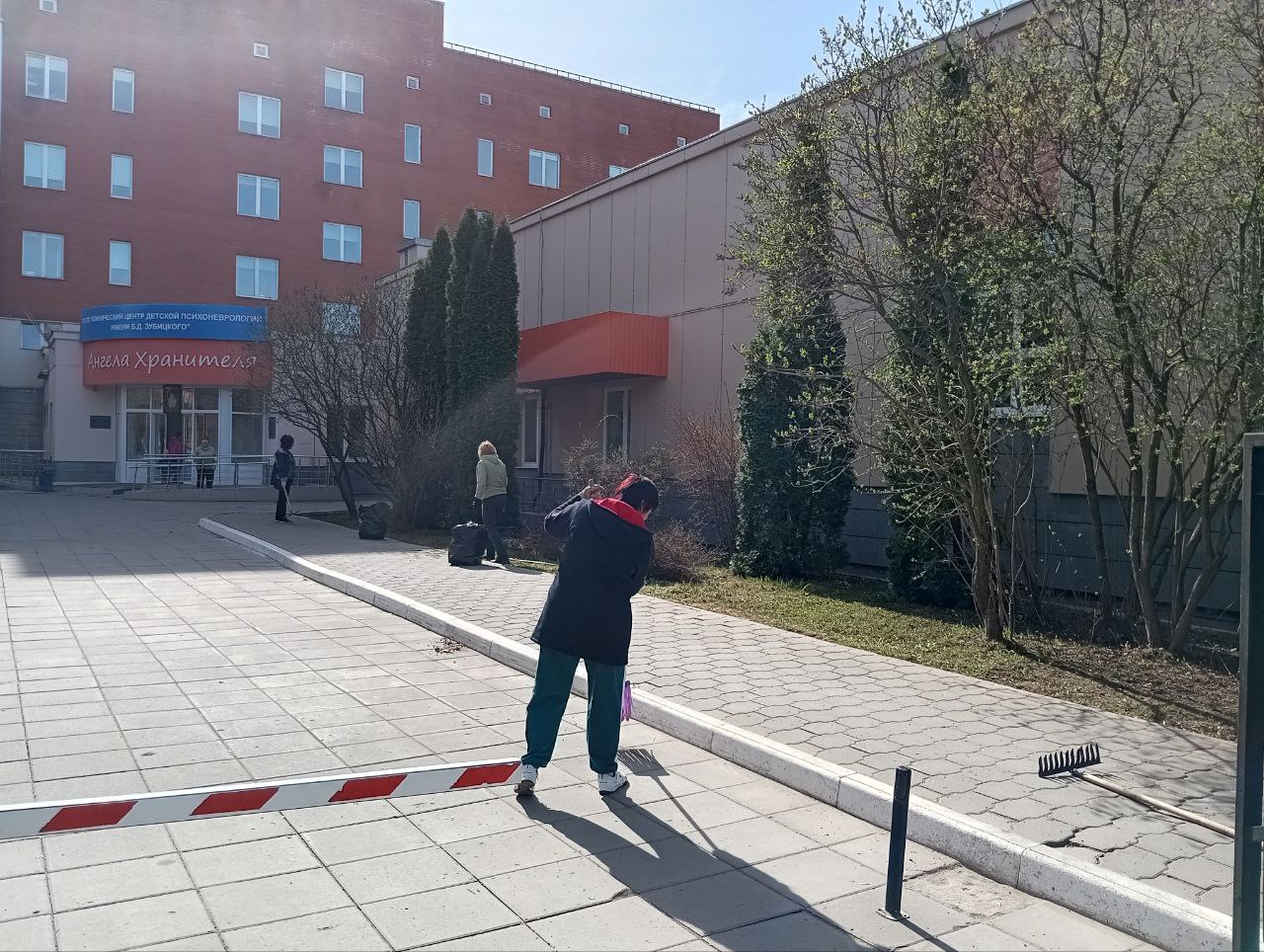 13 апреля 2024 года, в целях реализации мероприятий в рамках месячника чистоты, организованного в городе Тулы и Тульской области, на территории ГУЗ ТО «КЦДП им.Б.Д.Зубицкого» сотрудниками Центра проведен субботник.