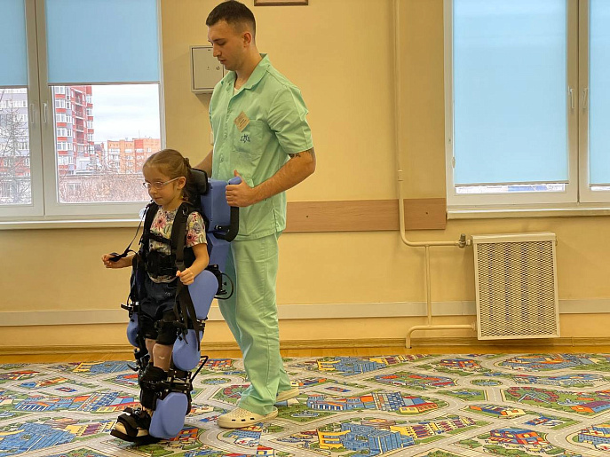 «Использование экзоскелета позволит уменьшить риск возникновения ортопедических осложнений, связанных с малоподвижностью ребенка, снизит мышечный тонус в ногах, увеличит амплитуду движения в суставах, улучшить опороспособность нижних конечностей, повысить толерантность к физическим нагрузкам, нормализовать стереотип ходьбы», — рассказала врач физической и реабилитационной медицины Катарина Красильникова.