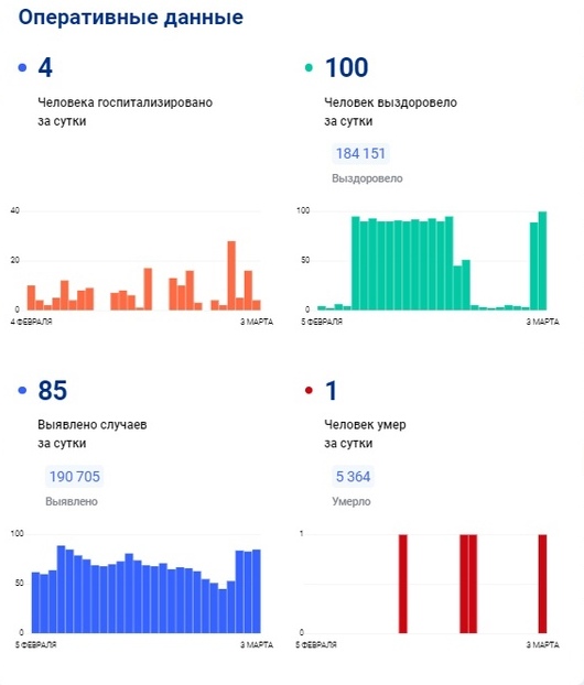 Как сообщает сайт стопкоронавирус.рф, общее количество заболевших в регионе на сегодня, 3 марта 2023 года, составляет 190 705.