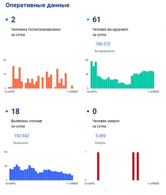 По данным на сегодняшний день, 11 апреля, в Тульской области не было новых случаев летального исхода от коронавируса. Еще 61 житель региона выздоровел.