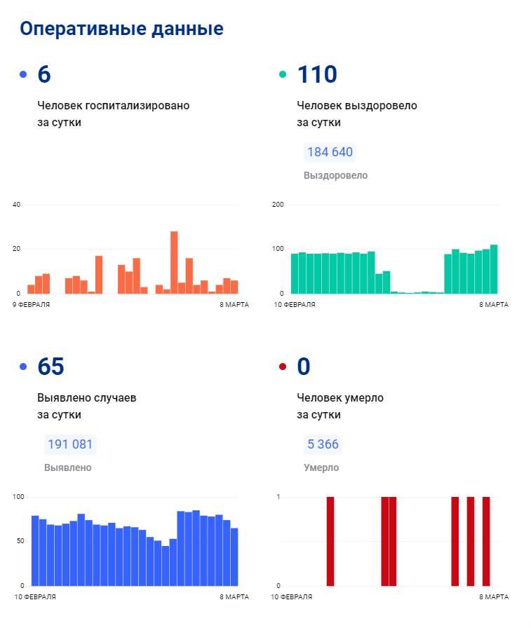 По данным на 8 марта, в Тульской области за сутки зафиксировали 65 новых случаев заражения вирусом COVID-19.