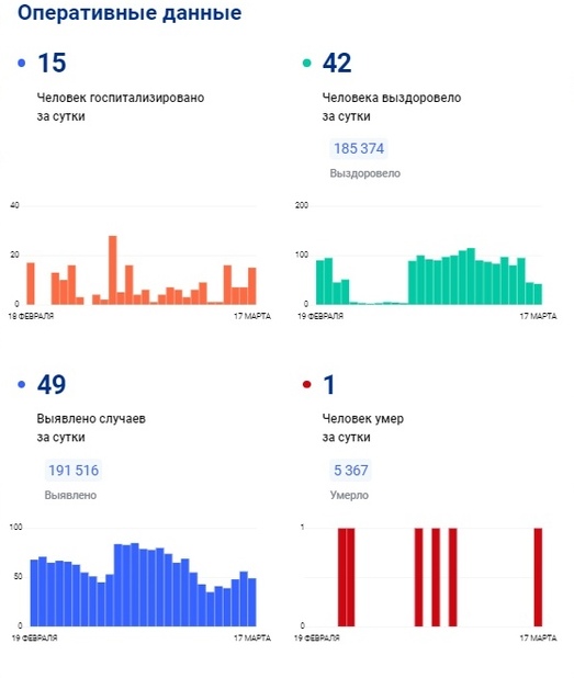 Общее число заболевших в регионе сейчас достигло 191 516 человек, выздоровевших - 185 374, число смертей достигло - 5 367.