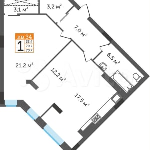 - Общая площадь: 70.7 м²