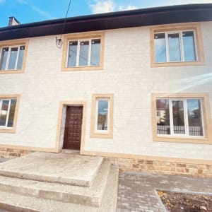 — Дoм пocтроен из газoбeтoнных блoкoв, снаружи отделан дагecтaнским камнeм.