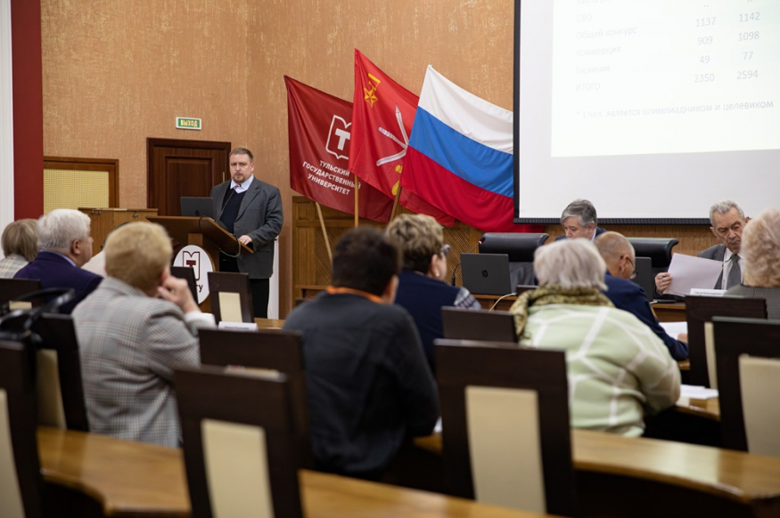 Итогам набора 2023 года и задачам по организации приёма в 2024 году посвятили свои выступления проректор по учебной работе Тульского государственного университета Владислав Котов, ответственный секретарь приёмной комиссии Тульского государственного педагогического университета им. Л.Н. Толстого Надежда Стемпинь и заместитель директора по воспитательной работе и молодёжной политике Новомосковского института Российского химико-технологического университета им. Д.И. Менделеева Александр Лобанов.