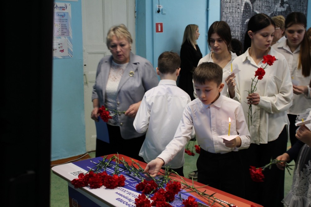 В исполнении учеников и учителей школы прозвучали стихи и песни, посвященные Алексею. Его память почтили Минутой молчания. А затем к «Парте Героя» легли живые цветы – в знак благодарности погибшему герою.