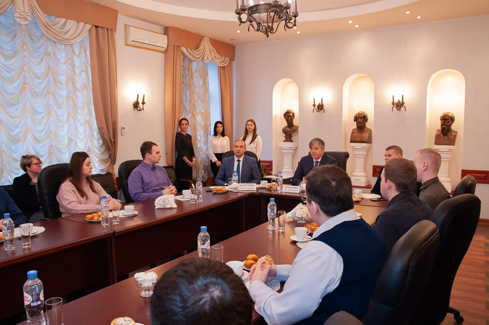 20 января в преддверии Дня аспиранта прошла встреча председателя Комитета Тульской области по науке и инноватике Максима Владимировича Циглера и ректора ТулГУ Олега Александровича Кравченко с победителями конкурсного отбора на получение именных стипендий соискателям учёной степени кандидата наук.